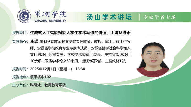 11月20日上午,巢湖学院党委委员、副校长丁俊苗率发展规划处、教务处、科...