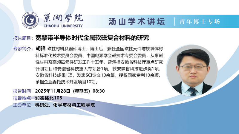 汤山学术讲坛青年博士专场第29讲:(11月28日:化学与材料工程学院胡锋博士讲座)