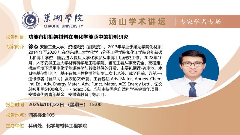 10月22日:优秀校友-安徽工业大学徐杰资格教授讲座