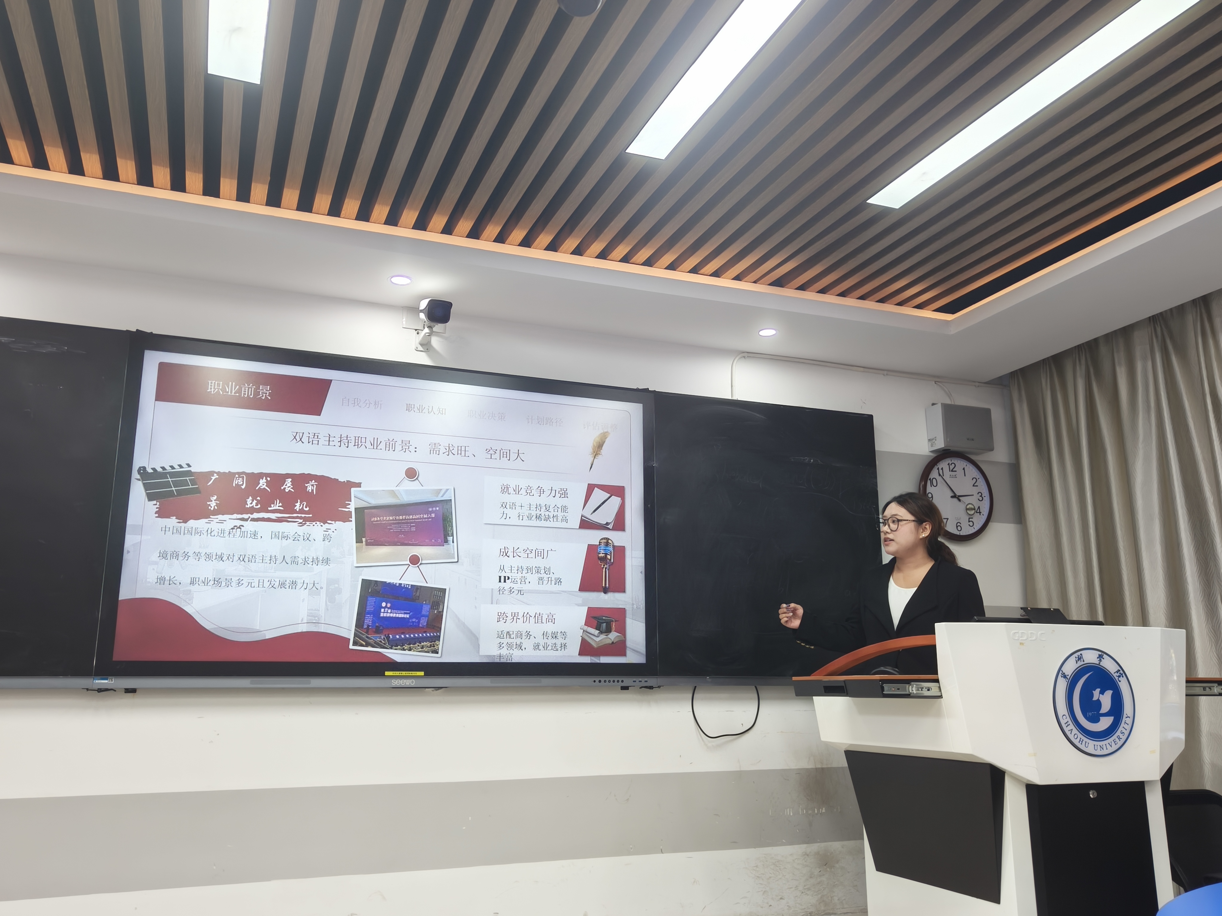 为增强大学生职业生涯规划意识,提高大学生职业规划能力和就业能力,10月22日下午,外国语学院在明德楼105智慧教室举办“筑梦青春志在四方规划启航职引未来”第三届大学生职业规划大赛,外国语学院党委副书记李磊、全体辅导员担任比赛评委,本次比赛由学院就业联络员余仁能主持。
