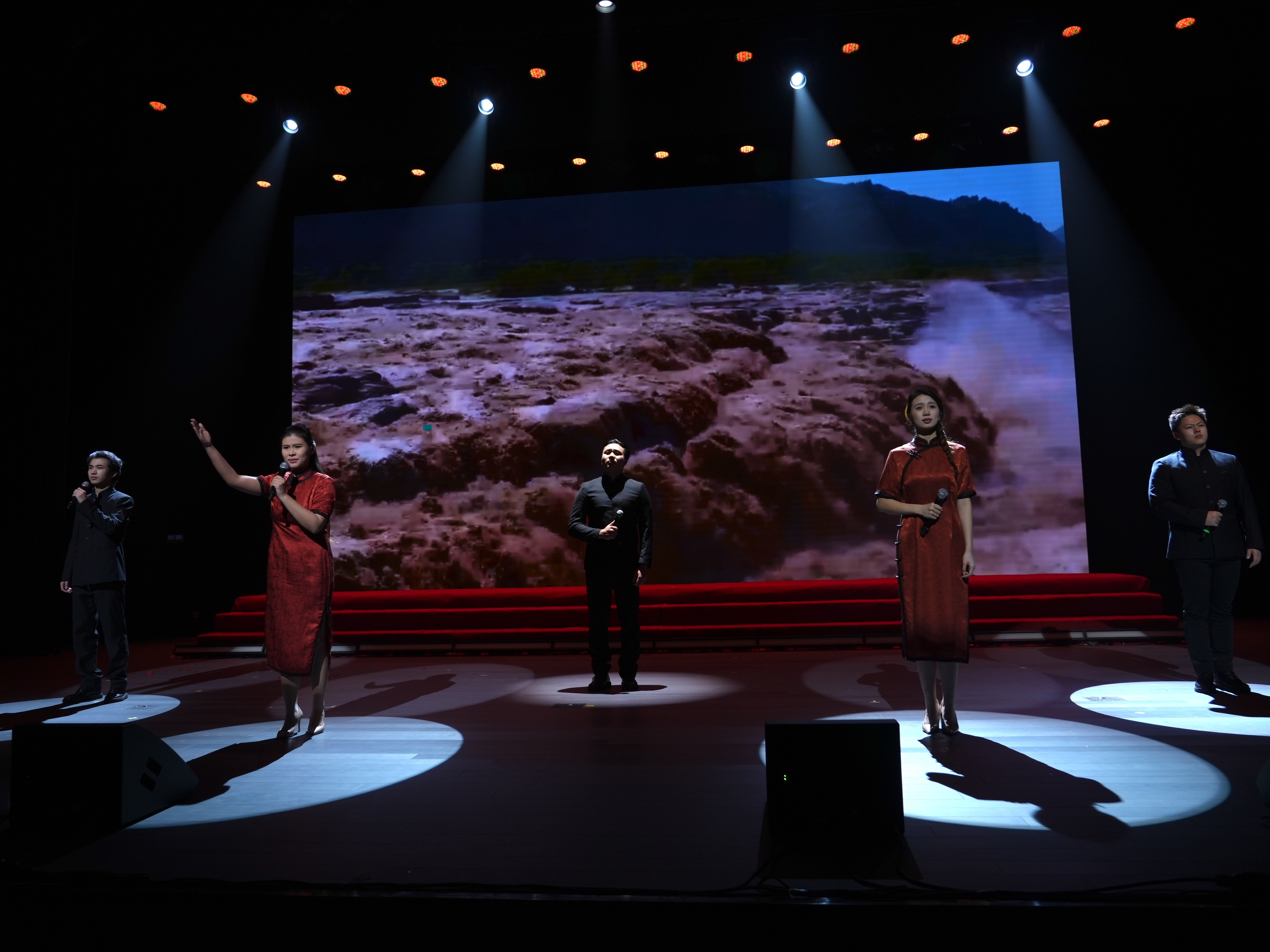 青山绿水是华夏大地的生态底色,真挚情感则是人们内心的精神绿洲。戏剧小品《关于昨天的意见》以细腻叙事,展现老一辈人刻骨铭心的爱情,引发师生对时光与情感的深度思索;朗诵《倾听绿水青山的诉说》引领师生步入自然秘境,沉浸式饱览生态本真之美,《父母之河》则深情歌颂黄河博大壮美,让大家在声音中感受母亲河的磅礴气势与深厚底蕴。