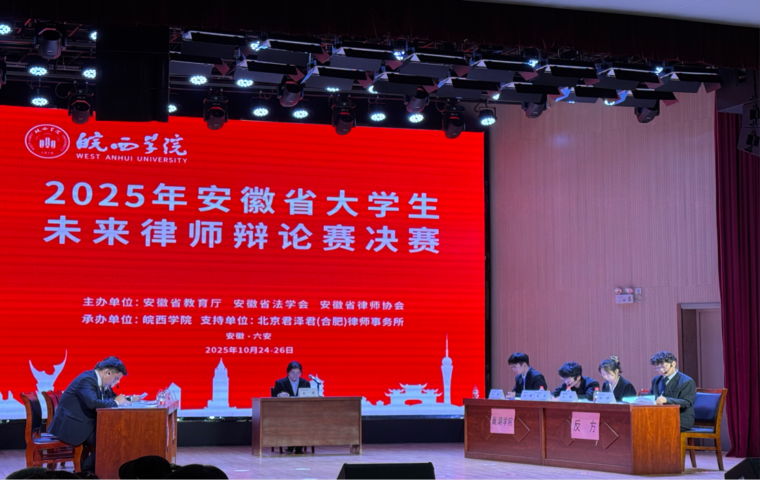 10月26日,由安徽省教育厅、安徽省法学会、安徽省律师协会共同主办的2025年安徽省大学生未来律师辩论赛在皖西学院落幕。全省20所高校法学专业本科生代表队参赛。巢湖学院代表队取得本场赛事季军,荣获一等奖。巢湖学院经济与法学学院法学专业张沁雯、马多运、潘化庚、徐国强四位同学荣获个人“优秀辩手”二等奖。