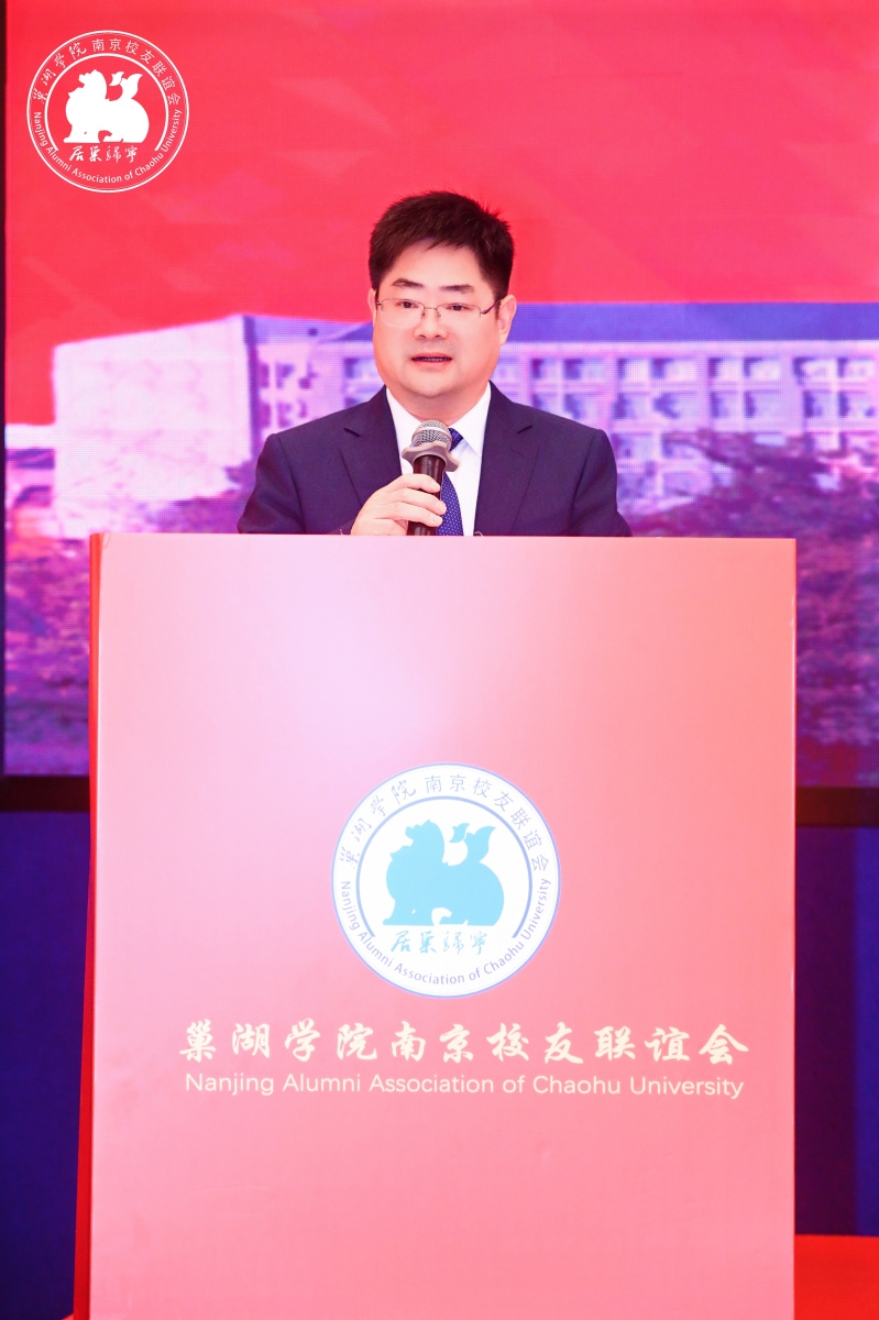 宋立敏代表学校向巢湖学院南京校友联谊会的成立表示热烈祝贺,并向所有在宁校友致以诚挚的问候。他在致辞中深情回顾了巢湖学院数十年的发展历程和办学成就。他指出,巢湖学院南京校友联谊会的成立,是学校校友工作中的一件大事、喜事,它标志着巢院校友网络在长三角核心区域迈出关键一步。他希望联谊会能充分发挥桥梁纽带作用,凝聚校友力量,同时也热情邀请各位校友常回“家”看看,一如既往地关心和支持母校的发展。