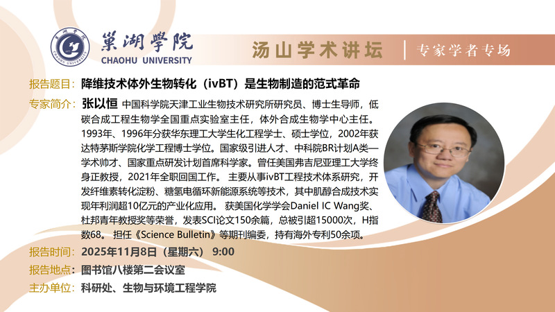 11月8日:中国科学院天津工业生物技术研究所张以恒研究员讲座