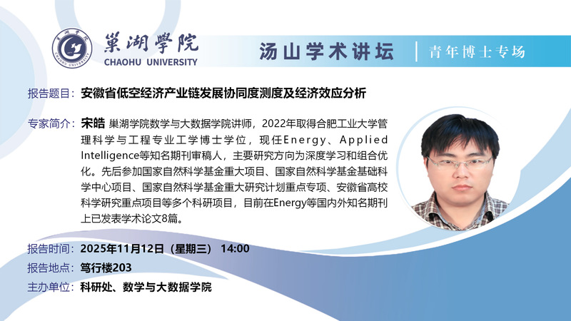 汤山学术讲坛青年博士专场第27讲:(11月12日:数学与大数据学院宋皓博士讲座)