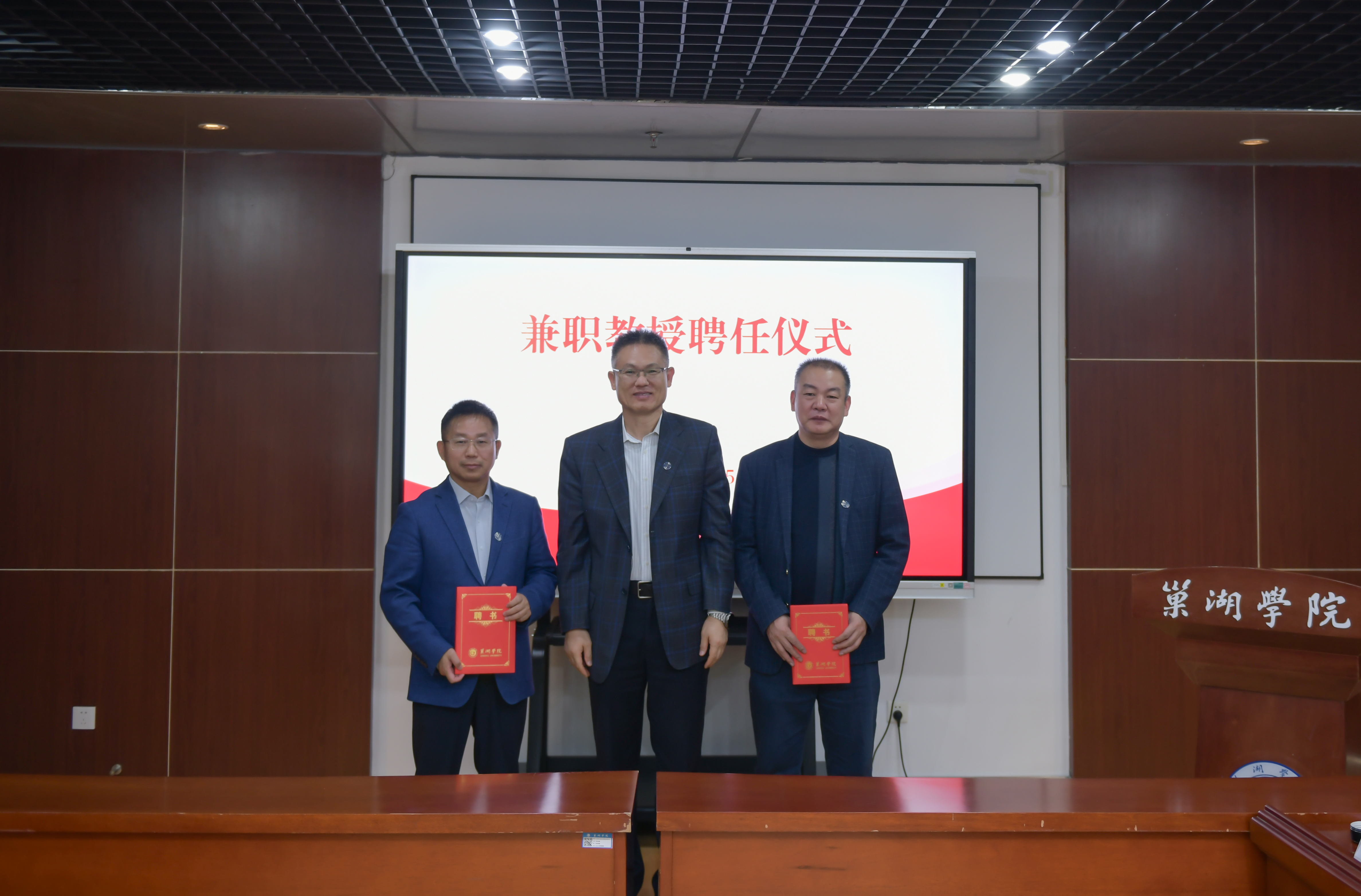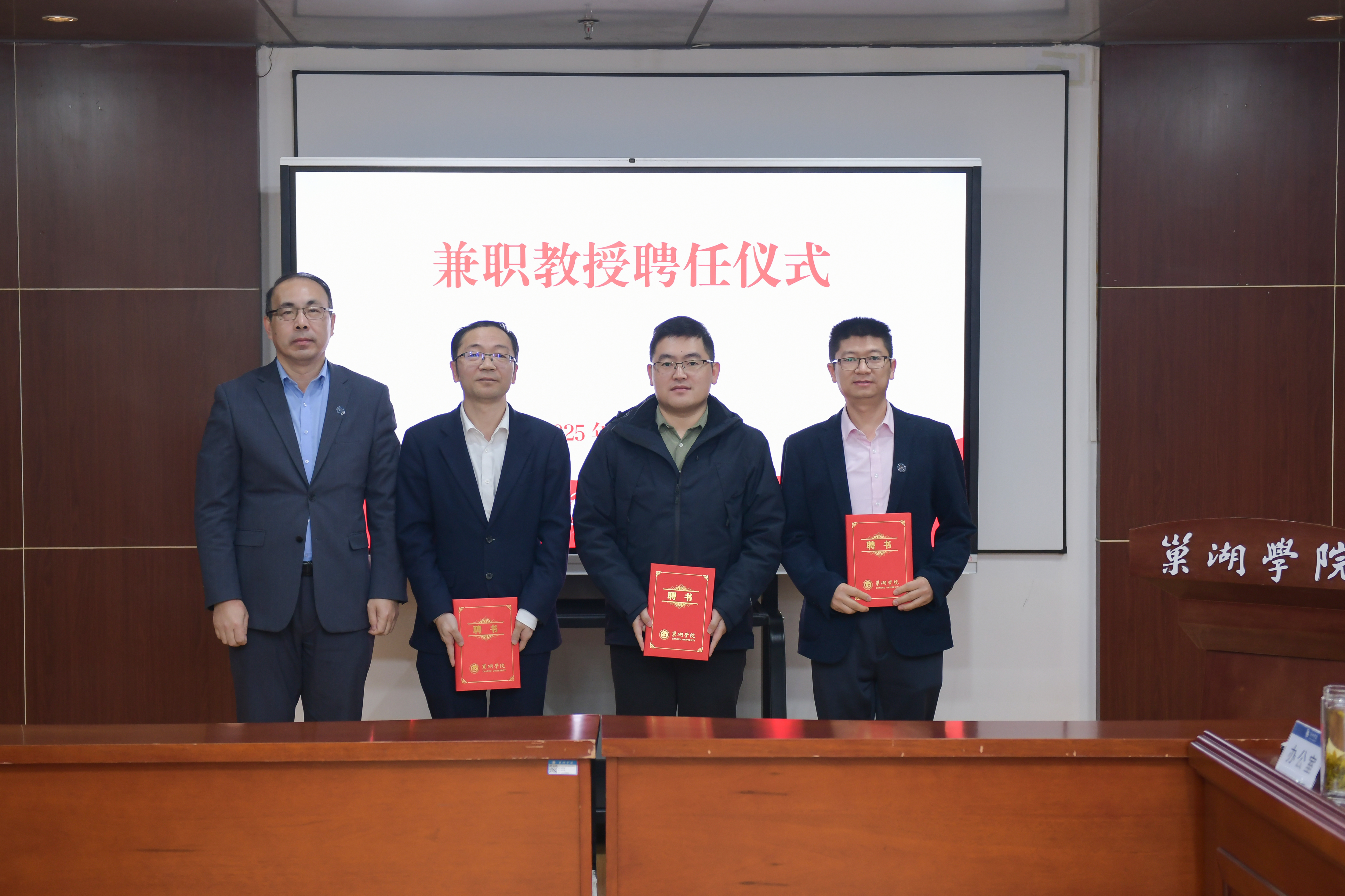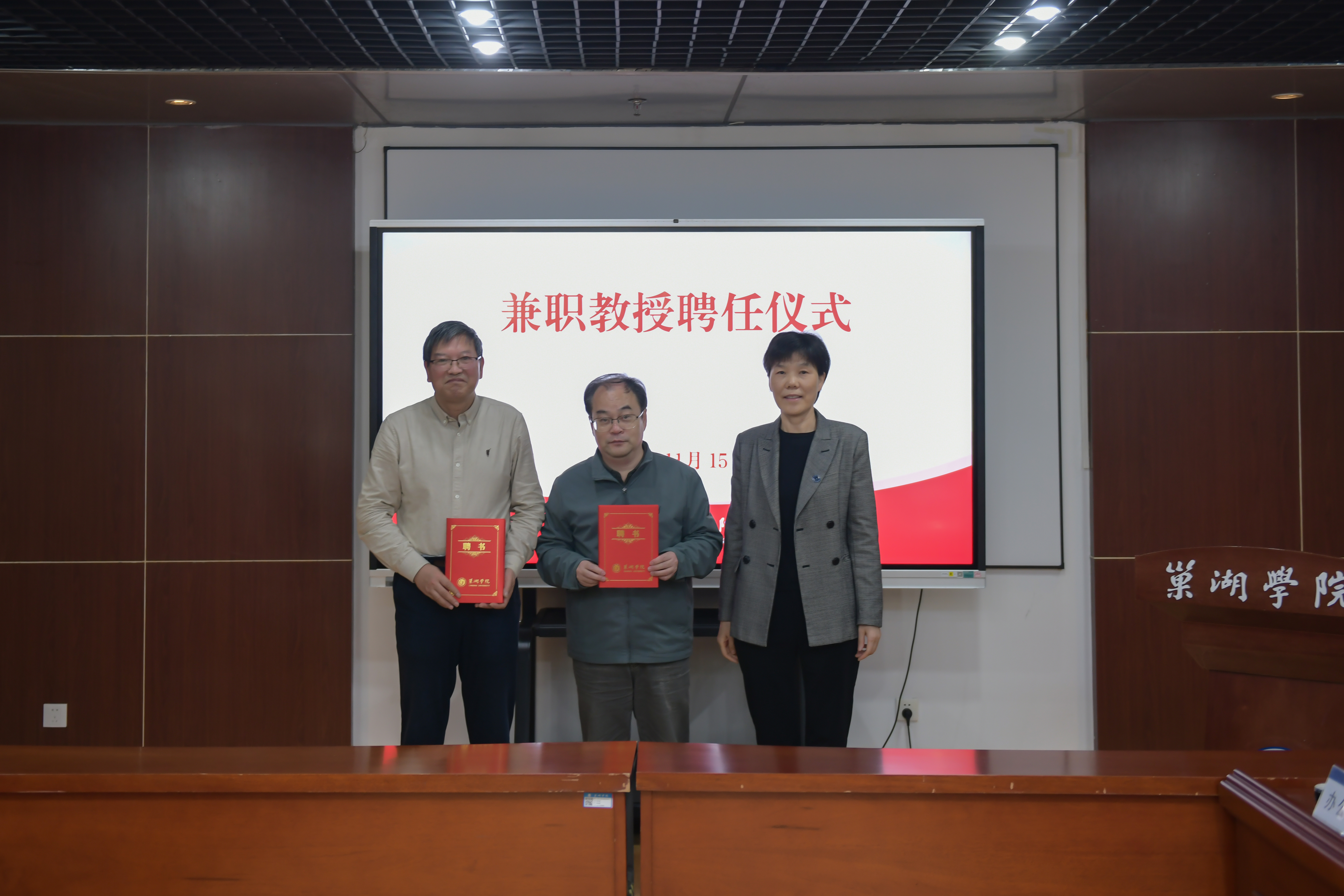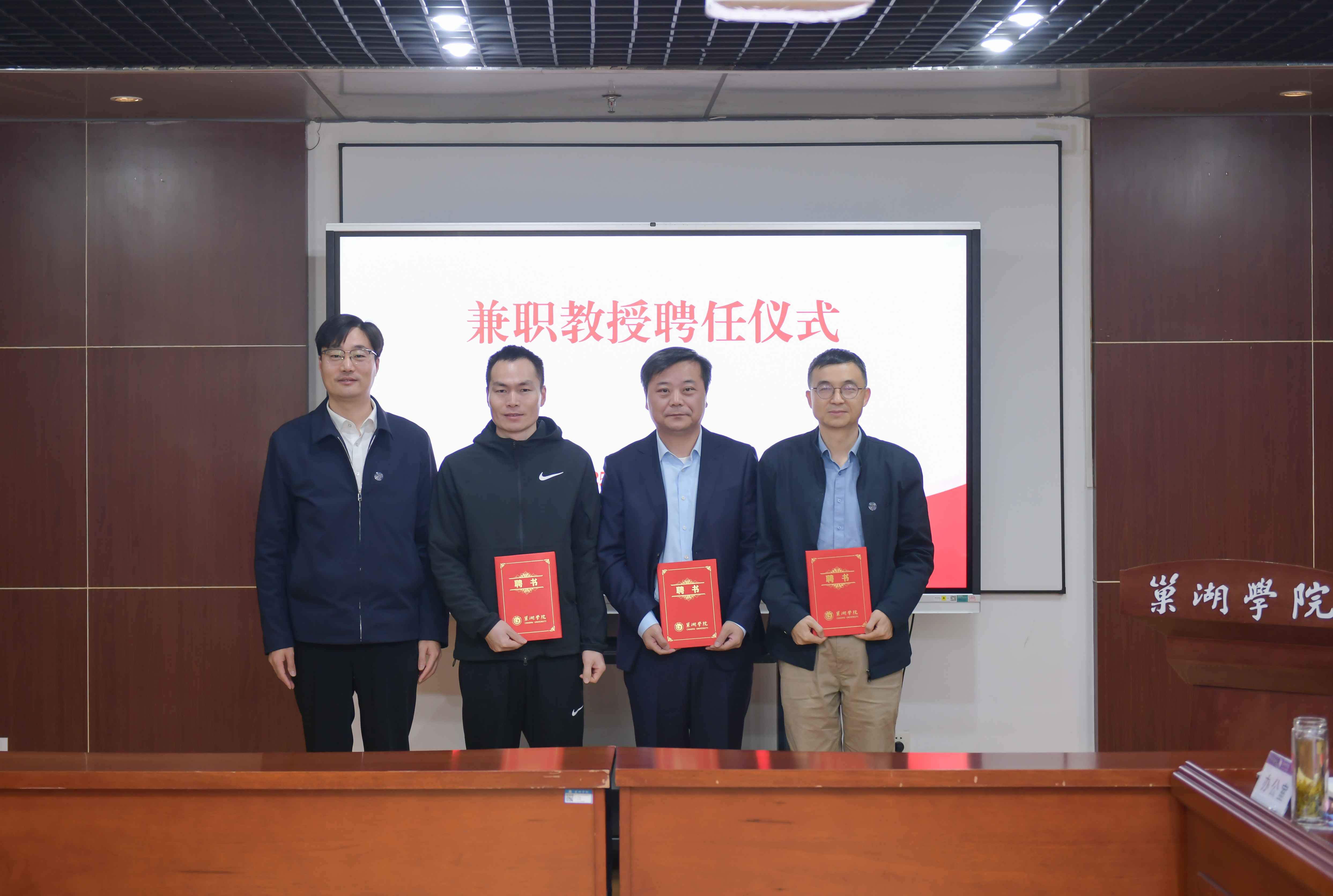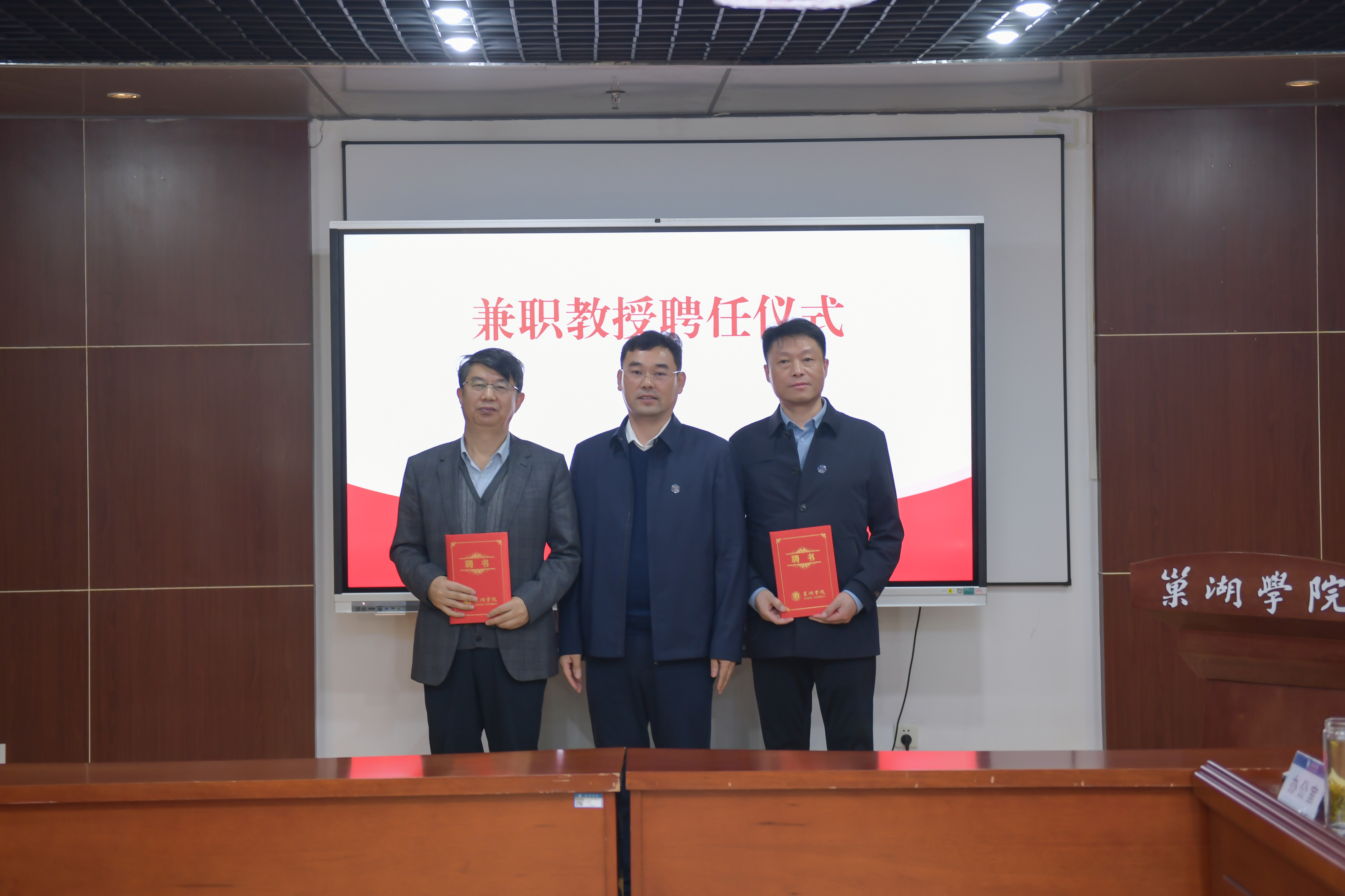 副校长周祥宣读兼职教授聘任人员名单,全体校领导为受聘校友颁发聘书。