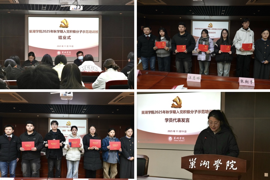 为贯彻落实《全国党员教育培训工作规划(2024—2028年)》等要求,11月12日至19日,巢湖学院举办2025年秋学期入党积极分子示范培训班,来自14个学院近40名学员参加了培训。本次培训按照校党委党校探索的“学、听、看、悟、行”五步法进行,分专题讲座、案例教学、主题研讨、视频教学、互动课程、实践教学等6个模块。