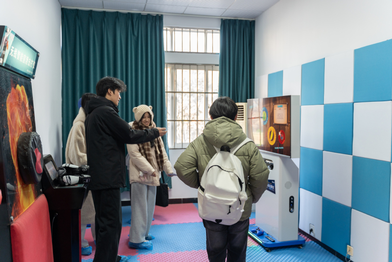 心理解压室内,专业拳击手套、智能解压仪等设备吸引了留学生们踊跃尝试。留学生们在学生志愿者的指导下戴上手套击打沙袋,体验互动宣泄仪,学生志愿者们在旁全程护航,确保体验安全有序,现场不时传来阵阵轻松的笑声。