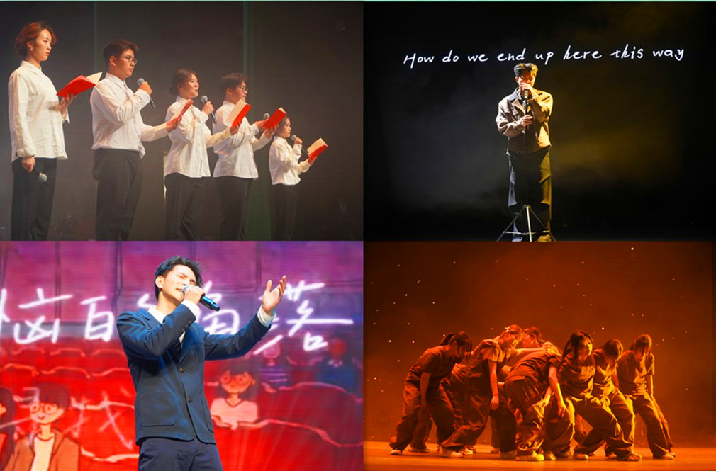 本次大赛自启动以来,吸引了众多新生踊跃报名,共有来自各学院、学生社团和大学生艺术团的40组优秀选手参加。经过激烈角逐,15组优秀选手脱颖而出。决赛在朗诵《山河万里》中正式拉开帷幕,慷慨激昂的语调、饱含深情的演绎,瞬间点燃全场氛围;歌曲《Fallin'Out》《盛夏光年》《我好想你》《等你下课》《一次就好》《手写的从前》凭借动人旋律与真挚情感,唱出了青春逐梦路上的勇敢执着和温暖期许,用音符定格青春最美的奋斗模样;舞蹈《生生回响》《无名的人》以舒展灵动的舞姿,传递出青年坚韧不拔的力量与直抵人心的情感共鸣;小品《敲想挖到你》包袱密集、诙谐幽默,引得观众捧腹大笑;情景剧《再见老师》将观众的思绪瞬间拉回青涩的中学时代,满含对老师谆谆教诲的深切感恩和无私奉献的由衷敬佩,让这份跨越时光的师生情愈发真挚动人;创意朗诵节目《非遗里的安徽》将安徽各地非遗文化与现代舞台艺术巧妙融合,在传统与创新的碰撞中彰显文化自信;合唱《匆匆那年》《向阳而生》则以铿锵有力的和声、昂扬奋进的演绎,彰显出新时代青年向阳生长、勇毅前行的蓬勃朝气,将现场气氛推向高潮。