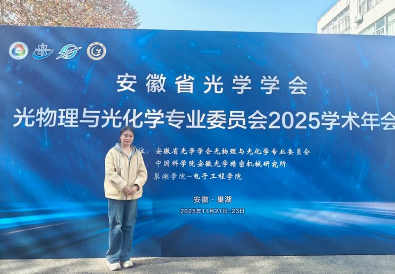 11月21日至23日,安徽省光学学会光物理与光化学专业委员会2025学术年会在巢湖学院求实楼召开。电子工程学院青年教师王雯应邀参会并作主题报告。
