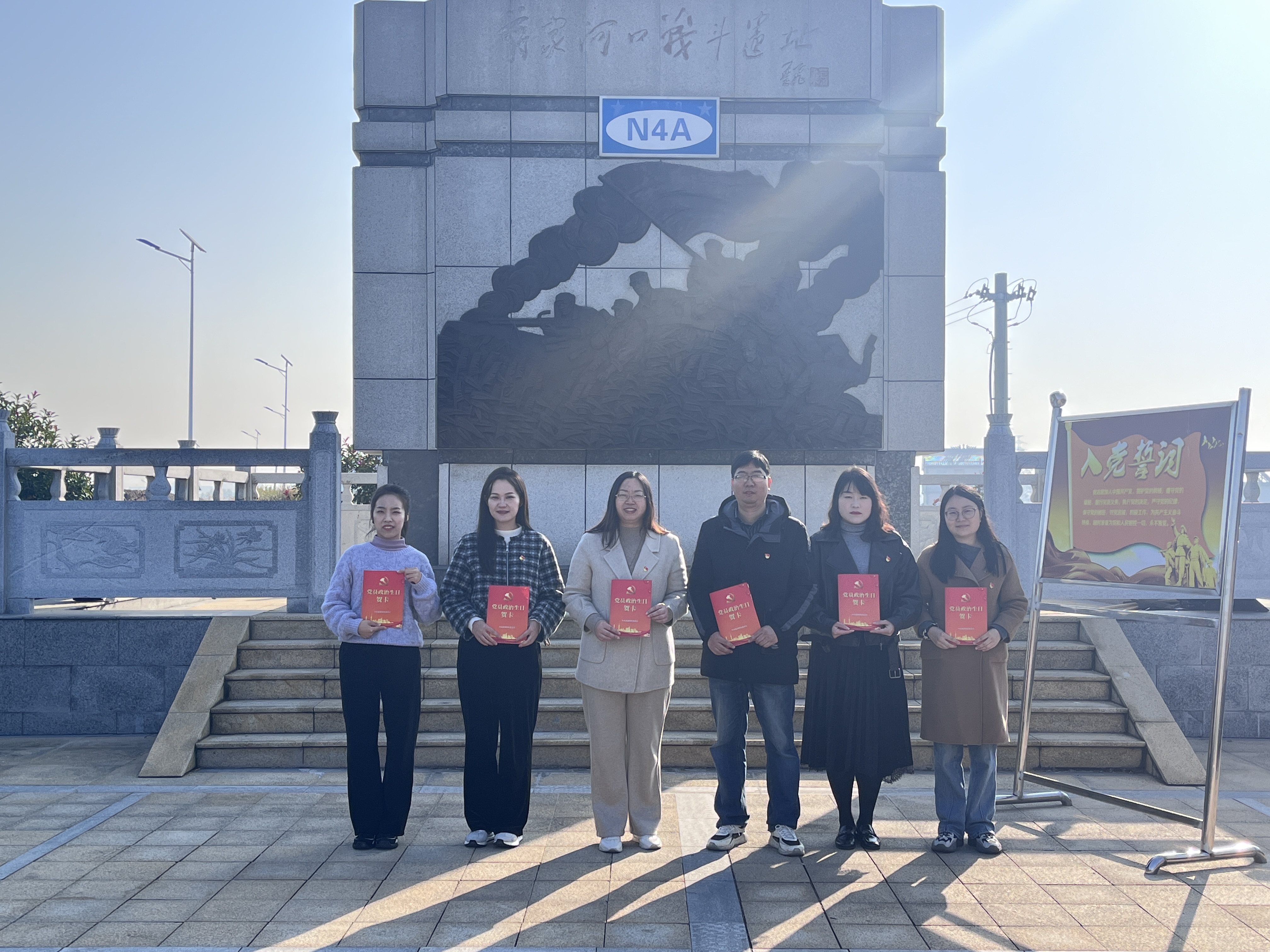 在蒋家河口战斗遗址纪念碑前,全体师生整齐列队,庄严肃立。学院党委书记张蕊带领全体党员重温入党誓词。铿锵有力的誓言回荡在耳边,表达了大家对党的无限忠诚与为教育事业奋斗终身的坚定决心。