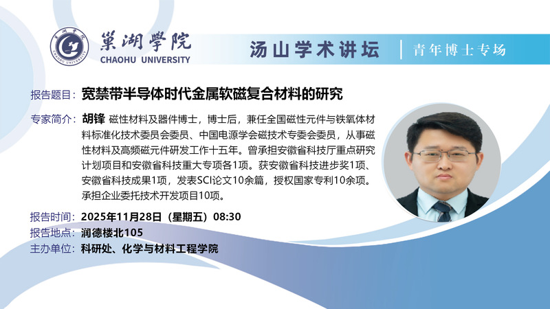 汤山学术讲坛青年博士专场第29讲:(11月28日:化学与材料工程学院胡锋博士讲座)