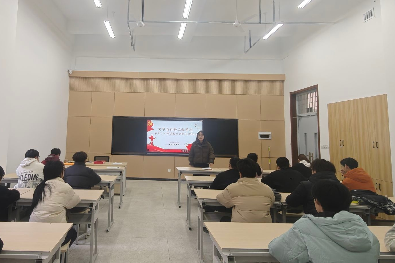 为扎实推进入党积极分子培养教育工作,从源头上保证发展党员质量,11月26日中午,化学与材料工程学院在润德楼北105教室举行第38期党校开班仪式暨党课第一讲。学院党委书记孙玮出席开班式并讲授党课,学生党员代表、第38期党校学员暨入党积极分子参加,开班仪式由学院组织员陆京京主持。