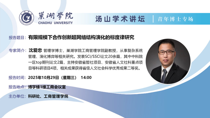 汤山学术讲坛青年博士专场第24讲:(10月29日:工商管理学院沈爱忠博士讲座)