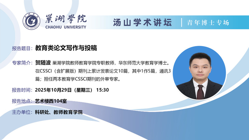 汤山学术讲坛青年博士专场第25讲:(10月29日:教师教育学院贺随波博士讲座)