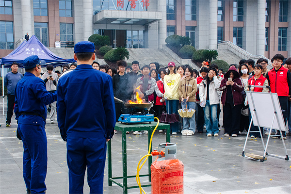 2025年11月9日是我国第34个“全国消防日”。为进一步加强消防安全宣传教育,提升广大师生员工的消防安全意识和应急自救能力,营造安全稳定的校园环境,11月9日上午,巢湖学院联合安巢经开区消防救援大队在图书馆南汤山广场,共同举办了以“全民消防 生命至上——安全用火用电”为主题的“119”全国消防日主题宣传活动。