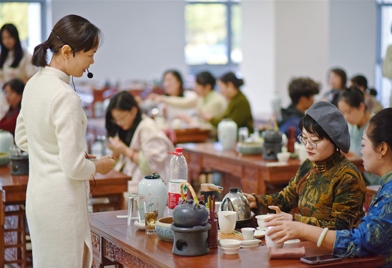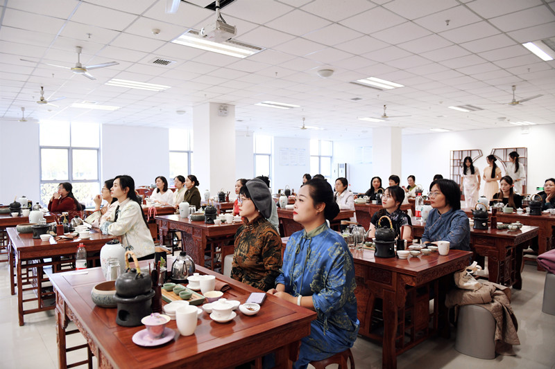 现场布置古雅,木质茶桌、青花瓷具搭配古典乐曲,营造出 “茶韵待绽、旗影翩跹”的雅致氛围。活动特别邀请旅游管理学院唐丽丽老师到现场传授茶艺知识。她从茶叶分类、窨制工艺与品茶礼仪等方面进行专业讲解并作茶艺演示,提壶、注水、温杯、分茶,一系列动作行云流水、优雅从容,袅袅茶香中,女教职工深入了解了中国茶文化的历史传承与精神内涵,感受到“一盅清茶含古今”的东方智慧。
