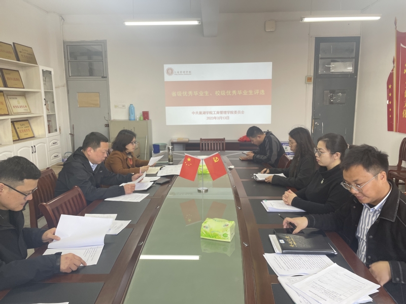 为全面落实安徽省及学校对于2023年省级和校级优秀毕业生评选工作的各项安排,工商管理学院于2023年3月13日召开2023年省、校级优秀毕业生评选会。参加会议的有学院2023届省、校级优秀毕业生评选领导小组成员。