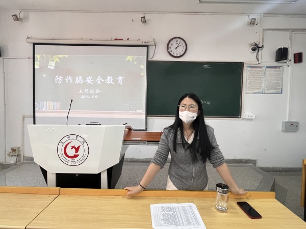 各位辅导员在防传染病主题班会、防诈主题班会和安全主题教育等主题班会上强调同学们要加强自身安全防范意识,加强反诈骗知识的学习,增强卫生防范意识和自我防护能力,真正做好个人安全防护,有效抵御风险隐患,守牢安全底线。