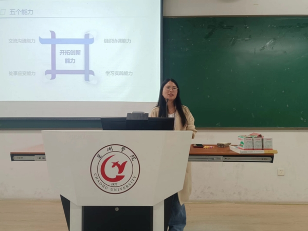 首先,许沙介绍本次会议将从学生干部的角色定位、学生干部的作用、学生干部的素质要求、五个意识和五个能力四个方面进行开展。接着,许沙表示学生干部是具有学生身份的特殊领导者、教育者和管理者,更是具有领导者、教育者和管理者身份的特殊学生。她强调学生干部要在学习上起带头作用,以学习为主,把握好自己的未来;在纪律方面,学生干部要发挥模范作用,在自身遵循学风校风的同时带动其他同学共同遵守;在思想上,要通过各项活动,提升自己的思想境界,严格要求自己,为同学服务。随后,许沙指出作为学生干部还需要发挥纽带作用,及时向老师反馈信息,做好信息沟通与交流,有效反映同学们的需求,解决他们的实际问题。学生干部要在工作时需要实事求是,脚踏实地,学会组织、协调、沟通能力,讲究方式方法。最后,许沙强调学生干部需要培养思想道德素质、业务素质和能力素质,树立五个意识:大局意识、责任意识、服务意识、奉献意识和团队意识,提高五个能力:开拓创新能力、组织协调能力、学习实践能力、交流沟通能力和处事应变能力。