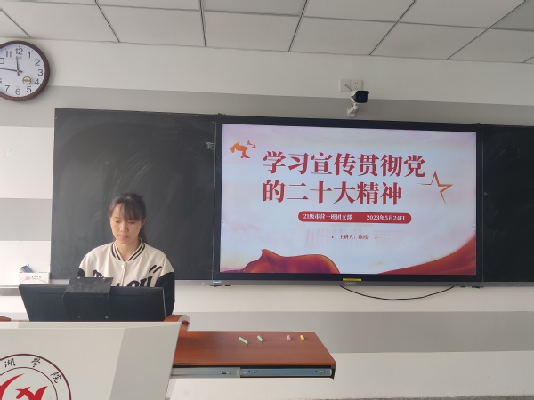 首先,陈楼向同学们介绍此次主题团日活动的流程和目的,她表示,学习贯彻党的二十大精神是当前一项重大政治任务,对建设中国特色社会主义现代化强国、实现中华民族伟大复兴中国梦具有重大而深远的历史意义。接着,她带领同学们一起观看红色影片《建党伟业》,她指出,党的二十大精神是一种艰苦奋斗、敢于担当的精神,做人干事要有责任感和使命感,要经得起历史的检验。随后,陈楼组织同学们阅读《习近平新时代中国特色社会主义思想专题摘编》,带领同学们浏览目录,并就书中习近平总书记在党的二十大上的讲话内容进行重温,邀请同学们进行感悟分享。最后,陈楼对此次主题团日活动进行总结,她表示,希望通过此次主题团日活动,同学们能深刻领悟党的二十大精神,将党的二十大精神运用到学习和日常生活中去,努力加强自身修养,肩负起新时代青年的历史使命和时代责任。