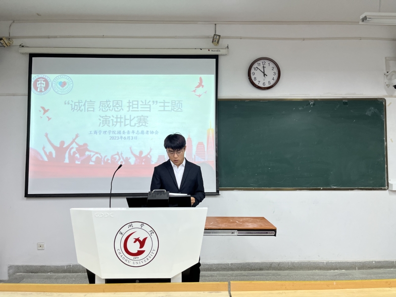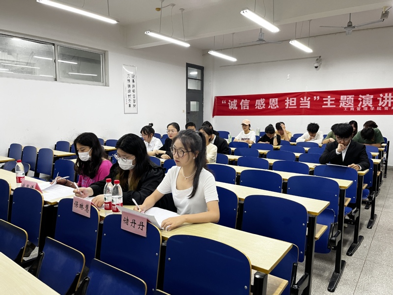 为教育和引导学生从学习、生活、能力“全方位”强化诚信意识,培养学生对亲人、朋友的感恩之情、感激之心,激发学生自立自强、成才励志,进而构建“诚实守信、感恩励志”的校园文化氛围,工商管理学院于6月3日在博学楼210开展“诚信 感恩 担当”主题演讲比赛,此次比赛由辅导员任洁老师指导,面向22级工商管理学院全体学生。