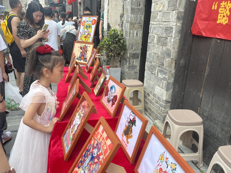 在柘皋老街上,众多非遗好物、文创产品、特色美食齐汇聚,集中展示了巢湖厚重的文化底蕴。我院暑期三下乡“懿本图”社会实践团队通过展销的方式,采取live2D年画、年画故事分享等新颖的形式赋予了传统年画全新的生命力,引得众多游客驻足观赏选购。