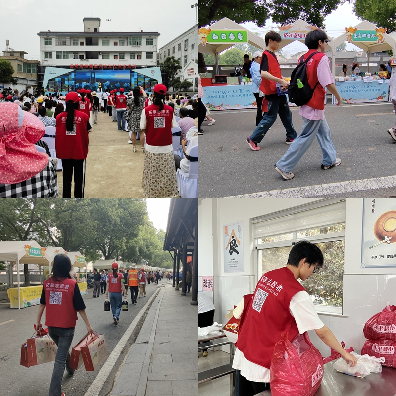 当日,超5万合肥及周边市民游客纷至沓来,感受古镇文旅魅力。为保障各项活动的顺利开展,我院组织150名学生志愿者于清晨6时许就到达指定位置严阵以待。道路卡口、非遗展台、河堤两岸,志愿者们无惧高温热浪,坚守岗位,让这抹志愿红成为一道亮丽的风景线。