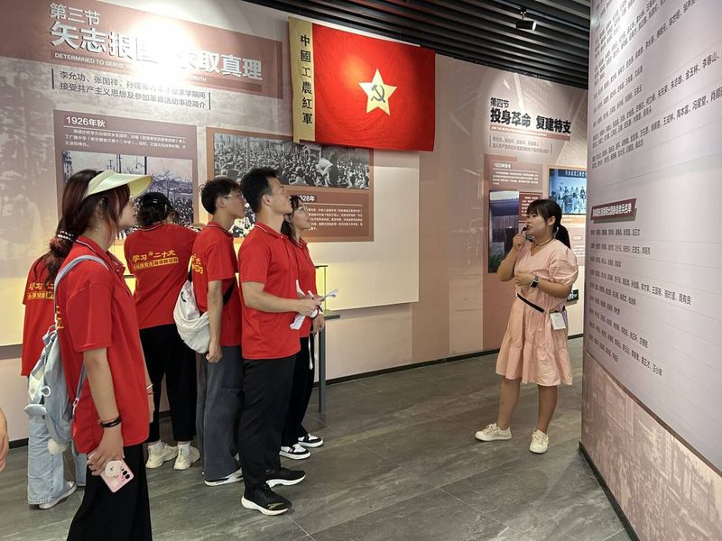 精准对接,实地访谈。在出发前,石林再次明确人员分工并安排行程,鼓励成员们在调研途中积极发挥自身作用,为此次宣讲活动作出贡献。为使团队成员了解郎溪抗战历史,在石林的带领下,实践团队依次前往姚村苏维埃遗址、党性教育馆、夏雨初烈士陵园、沙桥支部旧址、养心谷博物馆进行了从7月2日至7月8日为期七天的参观调研。教育馆等地分别用不同呈现方式记载着中共郎溪县地方党组织的建立与斗争史、郎溪县革命运动中的革命先辈的伟大事迹等内容。艰难竭蹶、风雨飘摇,以夏雨初同志为代表的革命烈士矢志不渝、初心不改,在革命的道路上却从未想过放弃。在这个过程中,实践团队学习了以烈士夏雨初为代表的“雨人”精神和“雨初”精神,体会到在抗战时期先烈们为革命胜利而不畏生死的勇气与力量,并学习了以李允功、刘珍英等六人为代表的沙桥革命精神,认识到无论目标有多么艰难,女性的力量也从未使人遗忘。成员们更是在讲解中回顾了郎溪抗战历史,对郎溪党史有了整体认识,先烈无私无畏、英勇顽强的革命精神得以世人铭记与传承。如今,虽没有枪林弹雨、血染山河,但先烈的英勇事迹、不屈的斗争精神仍需牢记于心,代代相传。为知晓当地居民对郎溪革命历史的了解程度,实践团队在郎溪中学附近对不同年龄段的群众进行采访。采访过程双方交谈融洽,青年在采访中表示会积极参与到郎溪党史宣传,老年人则表示会将郎溪革命故事代代相传,使后代子孙不忘初心,铭记历史。