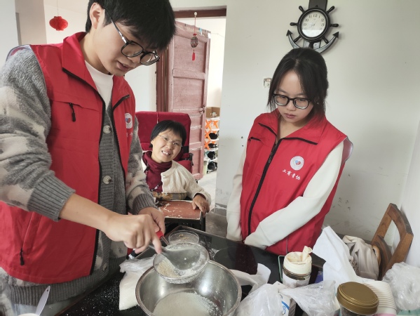 志愿者们还与胡阿姨共同制作重阳糕。在制作过程中,他们细致地向胡阿姨讲述重阳糕的制作方法,在交流中忙碌,让胡阿姨感受到了家人般的关爱。