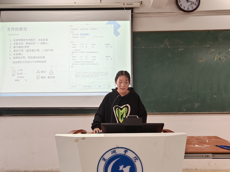 首先,郭允晴表示,本次培训内容包括PPT制作、文件格式要求、表格的制作与调整三个板块,并重点讲解“PPT模板基本操作”、“PPT的调整与更改”、“文件字体”、“文段要求”、“文件取号制度”等工作的规范流程与注意事项。接着,郭允晴提出表格制作与调整的细节要求,以制作签到表为例,通过细致的步骤,为学生干部们演示如何进行表格制造并就表格细节问题进行详细解读,针对部分表格所存在的问题做归纳整理,分类回答。随后,学生副书记候选人俞书成对部分成员进行了关于表格错误的提问。最后,俞书成希望各位成员不断提高自身政治素质、创新工作方法、强化业务能力。