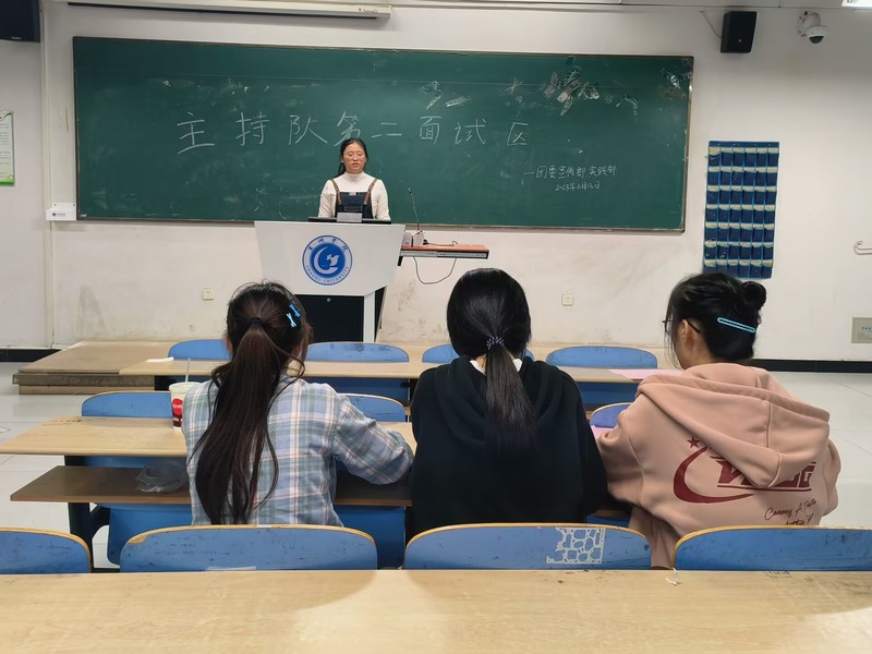 首先,工作人员组织参赛选手有序地进人等侯区,并告诉选手选拔的相关事项,选手听从工作人员指示,保持安静,遵循会场秩序,积极备试。接着,各位选手在工作人员的带领下,进入相应的面试教室。选手们面带笑容,向评委们问好并进行自我介绍,他们姿态端庄,满怀热情,评委把准备好的朗读材料交给选手进行朗读,选手自信大方的进行现场表演。随后,各位评委根据选手们的表现做出点评,表达自己的看法并提出了意见,选手们认真听取,积极改错。最后,评委询问选手对成为主持人的想法和对未来的期望,并依据他们的表现打出评分,鼓励他们继续保持热怔,提醒选手注意后续面试通知。