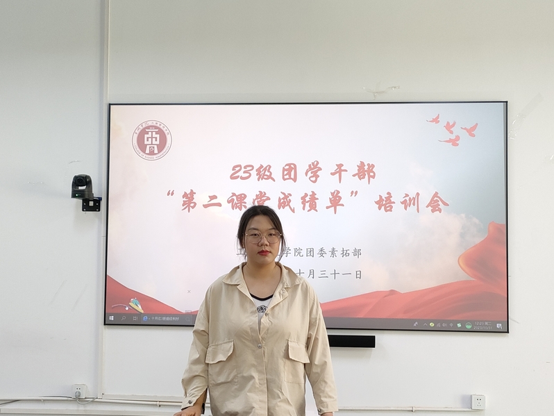 为加强同学们对“第二课堂成绩单”有关工作的认识,工商管理学院于10月31日中午在博学楼一楼会议室召开第一次23级团学干部“第二课堂成绩单”培训会。此次会议由素拓部负责人吴静静主持,素拓部全体成员及23级全体团支书和素拓委员参加。