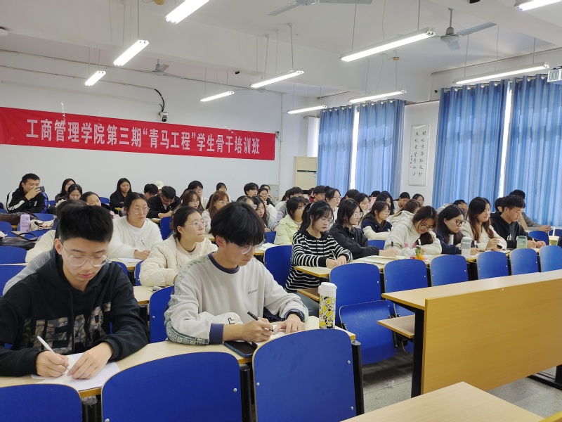 为深入学习贯彻党的二十大精神,培养优秀学生骨干,工商管理学院11月21日中午在博学楼312教室开展“青马工程”学生骨干培训班第二讲。本次培训由党委副书记金晶主讲,全体培训班成员参加。