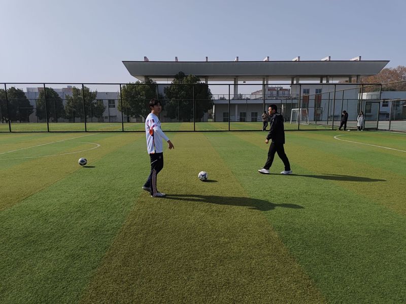 运动,是勇往直前的象征,是毅力与坚韧的代名词,青春因运动而富有光彩。本次选拔赛聚集了一批热爱运动、喜爱足球的热血青年们。首先,足球队队长介绍了本次选拔赛的流程和标准,鼓励选手们展现自己的足球技艺、发挥自己的水平、彰显青春的风采。随后,在工作人员的引导下选手们依次展示自己的足球基本功。选手们在绿茵场上动作矫健、球技娴熟,控球、传球、射门一气呵成。他们挥洒自己青春的汗水,以高昂的斗志完美演绎了自己对足球的热爱,展现出足球的无边魅力。最后,叶程予对选手们的运球姿势、传球方式进行点评,对选手们的不足进行纠正,希望选手们能够坚持努力,继续提高球技水平,不断提升自身能力。