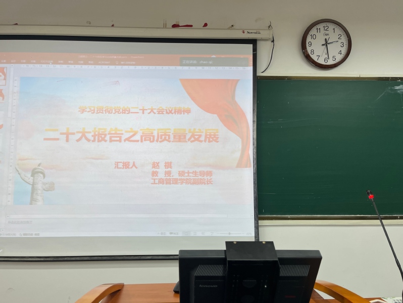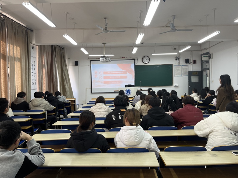 赵院长以“为什么说高质量发展是首要任务”“如何推动高质量发展”和“大学生如何高质量完成学业”三个问题引入,为全体学生带来一场深入浅出、别开生面、生动活泼的理论宣讲。赵院长指出党的二十大报告描绘了全面建设社会主义现代化国家、全面推进中华民族伟大复兴的宏伟蓝图,为新时代新征程党和国家事业发展、实现第二个百年奋斗目标指明了前进方向、确立了行动指南,是党和人民智慧的结晶。赵院长就“大学生如何高质量完成学业”展开详细讲述,用身边实例勉励同学们刻苦学习,积极参与学科比赛、科创项目、实习考证,不断提升综合素养。此次主题班会既着眼国家大局,又关注个人发展,同学们纷纷表示受益匪浅,既加深了对党的二十大精神的理解,又明确了个人成长成才之路。