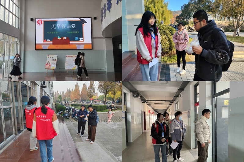 学风建设是高校立德树人的重要载体,为持续深化“三全育人”综合改革,优化育人环境,提升育人实效,工商管理学院于11月中下旬开展为期两周的学风建设月特色活动——“无早餐课堂”专项学风督查行动。活动期间,每天早上志愿者们准时到达教学楼各出入口,对携带早餐进入教学区域的同学进行文明劝导。同时,学院成立“无早餐课堂”督导组,由当日教学巡查老师与学生志愿者组成,于每天第一节课前往各教室巡查“无早餐课堂”落实情况。