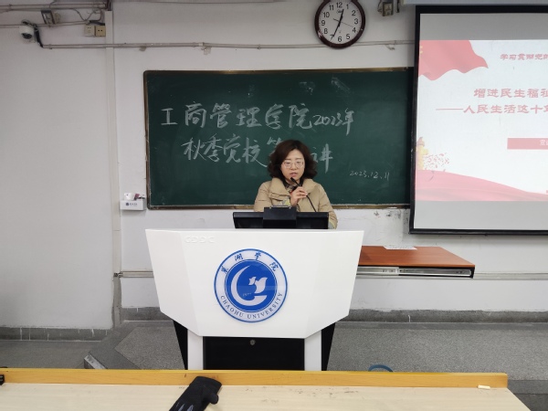 为深入学习贯彻党的二十大精神,进一步提升入党积极分子政治素养,工商管理学院于12月11日中午在博学楼302教室举行第11期入党积极分子培训班第三讲,本次主讲人是学院党委副书记、纪委书记金晶。