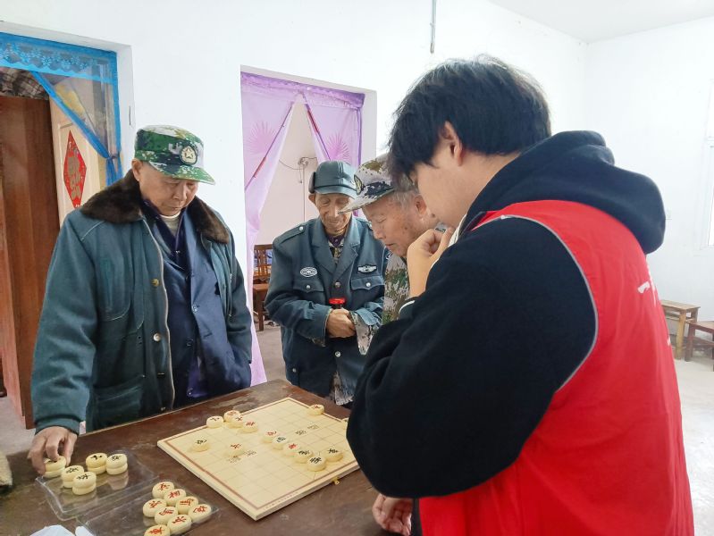 棋艺比拼,“棋”乐融融。志愿者联合巢湖学院弈博棋社共同前往敬老院,陪伴老人进行象棋比赛。比赛过程中,不论是老人还是志愿者均神情专注、思绪沉浸在棋局之中。适当的娱乐活动,既可以消磨闲散时光,也可以活跃老人思维。