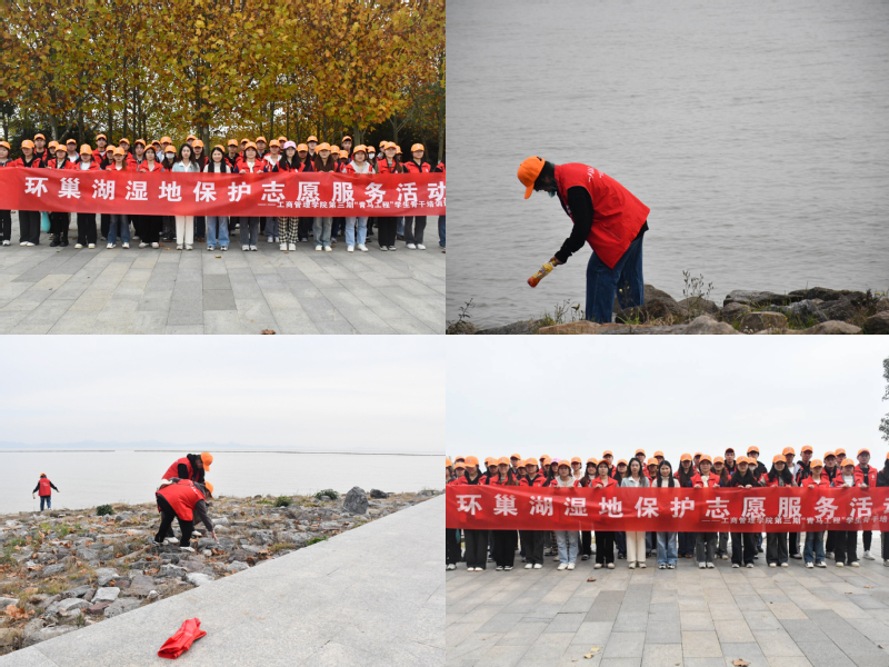 为响应生态文明建设纳入国家发展总体布局,贯彻落实人与自然和谐共生的基本方略,培训班全体成员赴月亮湾开展环巢湖湿地志愿服务活动。同学们沿湖观察巢湖水质,记录蓝藻水华发生情况,探索湿地生物多样性;开展环境整治行动,清理烟头和白色垃圾,助力湿地保护。全体成员用实际行动践行习近平生态文明思想,提升社会服务能力,为环巢湖湿地生态保护贡献青春力量。