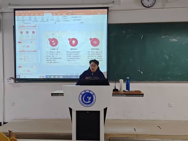 首先,郭靖辉向大家介绍团务工作开展的主要内容,他分别从班子建设、团员管理、组织生活、制度落实、作用发挥五个方面谈到团支委在班级事务中起到的重要作用,且指出班级需要定期开展三会两制一课、组织生活会、党史教育等活动。接着,郭靖辉强调活动的开展需要分工明确、账目清楚,团支委要在规范使用团的标志的基础上起到带头作用。随后,郭靖辉详细介绍了团日活动开展与青年大学习的相关事宜,各班组织委员需要及时通知班级同学观看青年大学习,并将学习情况反馈给组织部对接人。最后,郭靖辉表示希望团委、学生会全体成员进一步提高业务能力,积极投身于团务工作的开展,为工商管理学院的发展贡献自己的一份力量。