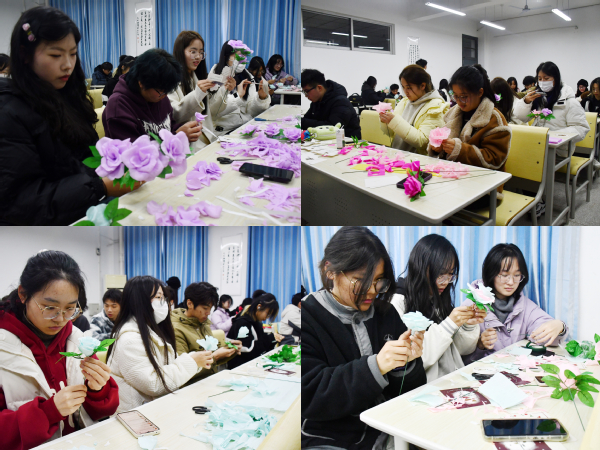 在博学楼113教室这个温馨的空间里,通过草蜢协会成员的细致指导,同学们表现出浓厚的兴趣和高度的热情。在挑选卡纸时,不仅考虑了色彩搭配的和谐性,还思考了花束的整体造型与设计理念,力求在制作过程中达到美观与创意的完美结合。最终同学们将于3月8日将这些满载着心意的花束送给学院的女教职工们。这份由心而发的感谢之情,温暖了每一个人的心房,这份美好的心意,为营造和谐的校园文化环境添上了浓墨重彩的一笔。