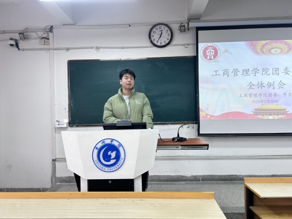 为更好地开展新学期的团委、学生会的工作,增强学生工作意识和活力,进一步落实下一步工作计划和安排。工商管理学院于2月28日在博学楼302教室召开工商管理学院团委、学生会第一次全体例会。本次会议由团委学生兼职副书记俞书成主持,工商管理学院团委、学生会全体成员参加。