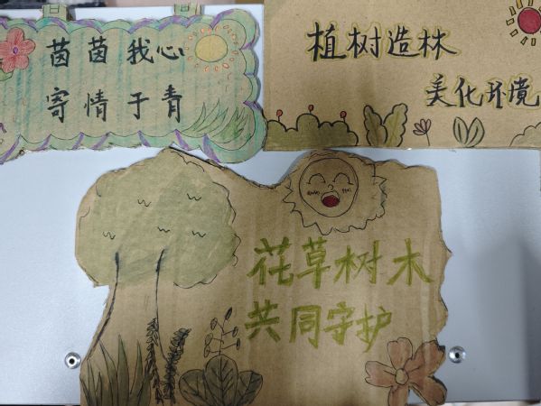 “妙手回春”,护绿先行。同学们通过收集校内废旧纸板,进行裁剪涂画,制作携带爱护花草文案的宣传标牌,众多作品不拘一格,充满着同学们的奇思妙想,标牌上书写的草木温情将会让浓浓绿意洒遍巢院每一个角落。