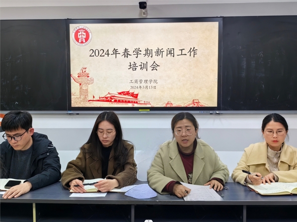 为明确宣传工作的规划要点和内容管理标准,提高宣传工作的效率和质量,工商管理学院于3月13日下午在博学楼412教室召开2024年春学期新闻工作培训会。本次会议由党委副书记金晶主持,团委书记许沙、团委副书记储岚霖、辅导员李阳出席,团委、学生会全体部门负责人,青年志愿者协会宣传部、新媒体负责人参加。