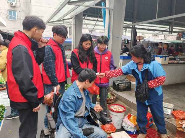 活动伊始,志愿者向李叔叔表达关心与祝福,接着,在李叔叔的带领下,志愿者与其一同前往附近的菜市场,体验了一场别开生面的购物之旅。在菜市场里,李叔叔像一位经验丰富的导师,向志愿者传授了如何挑选新鲜蔬果的秘诀。他详细地讲述怎样通过观察颜色、闻气味和轻轻按压果实来判断水果的新鲜程度,还向大家分享了自己多年来积累的购物经验和省钱小技巧。志愿者听得津津有味,不仅学到了实用的生活技能,还感受到李叔叔对生活的热爱。在返回的路上,李叔叔还向志愿者介绍了沿途的风景和见闻。他如数家珍地讲述着路边的花草树木,志愿者也被这美景所吸引,纷纷拿出手机拍照留念。最后,志愿者与李叔叔来到了一棵紫荆树前,共同留下了一张珍贵的合影。这棵紫荆树象征着友谊和团结,它美丽的花朵仿佛也在为这次活动增添了一份别样的色彩。在合影之后,李叔叔还与志愿者亲切交流,鼓励他们要珍惜当下的时光,努力学习知识,为未来的生活打下坚实的基础。