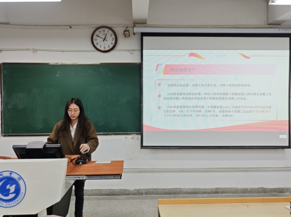 3月27日至29日,学院团委副书记储岚霖带领团委、学生会、青协成员学习全国两会精神。通过“两会知多少”帮助同学回顾了2024年全国两会概况;通过“金句聊一聊”解读政府工作报告中的“新三样”“新质生产力”“人工智能+”等新词热词;在“两会好声音”部分,带领同学们了解今年人大代表和政协委员们围绕当代青年发展提出的“加强全民美育”“推广全民阅读”等议案,其中就人大代表热议高校毕业生就业与同学们作了深入交流。储岚霖表示,团学骨干是学生群体中的中坚力量,要将学习两会精神的成果不断转化为工作实效,在新时代新征程上坚定理想信念,展现青春担当。