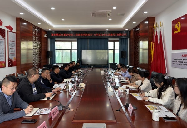 4月18日上午,工商管理学院党委书记管超、党委副书记金晶等一行8人前往夏阁镇举行“大学生社会实践基地”挂牌仪式。夏阁镇党委书记徐济昌、镇长汤贤德、党委副书记荚恒松热情接待,经发办、宣传办、综治办、民政所、文化站、党政办、夏阁商会等相关负责人参加会议。