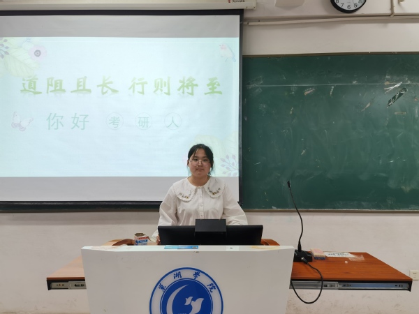 分享会上,刘重阳进行简短的自我介绍,她在今年成功跨专业考取重庆工商大学会计学硕士,她结合自身在校经历,分板块与同学们分享考研的经验,并向同学们详细介绍专硕与学硕的区别,以及初试、复试的流程和信息检索方法,让同学们对考研的整体流程有更加全面的了解。接着,刘重阳提出问题:“大家为什么想要考研?”引发同学们深入思考,并针对同学们的回答进行深入浅出的分析和引导,使大家对自己的考研动机有了更加清晰的认识。随后,刘重阳在谈到各科学习方式时,提出“看、背、练、写”的四字诀窍。她强调,只有将这四个步骤有机结合、反复循环,才能更好的在考研的道路上取得优异的成绩,她还向大家分享自己在备考过程中的心路历程,鼓励同学们在备考过程中保持积极的心态,不要过于焦虑,相信只要坚持下去,就一定能看到希望,希望同学们明白不是看到希望才去坚持,是坚持下去才能看到希望。分享会让在座各位同学深受鼓舞,激励着大家为自己的梦想而努力奋斗。
