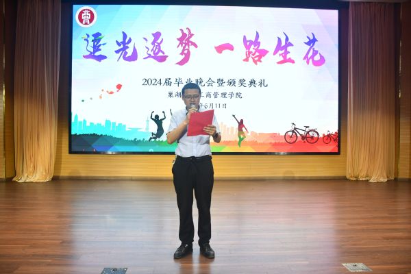 5月11日晚,工商管理学院在求实楼报告厅隆重举行“追光逐梦 一路生花”2024届毕业晚会暨颁奖典礼。工商管理学院全体教师及2023届全体毕业生线上线下同步观看。
